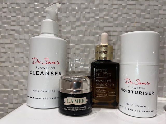 My night time routine consists of just 4 products. Cleanse, eye cream, serum and moisturiser. I cleanse with Dr Sam Flawless Cleanser and my eye cream is The Eye Concentrate by La Mer, the jury is out on the need for an eye cream… I usually when not ‘with child’ have botox injections but my last treatment has well and truly worn off and I do suffer with lines round my eyes which even a gorgeous to use eye cream by La Mer is having no effect on. I really cannot decide if eye cream is really worth the investment but as I can’t get Botox for a good few months I think I will use up the eye cream in the hope that at least the lines won’t get worse until I can get treated again. My night serum is another old favourite of mine. Estee Lauder Advanced Night Repair (ANR), its hydrating and sinks in well and is just an all round great serum with no active ingredients so even though I would happily use this all the time it is especially useful to me at the moment. I really like Dr Sam’s Flawless Moisturiser a non greasy but rich hydrating lotion, she says it’s like a hug for your skin and it really is!